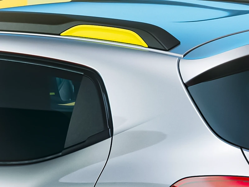 Compacto e atraente, o Renault Kwid se destaca por seu design de SUV: altura do solo de 185 mm, revestido com placas de proteção de carroceria e dianteiras. Esse SUV chama atenção com sua nova cor cinza cassiopée, adesivos laterais exclusivos e os detalhe